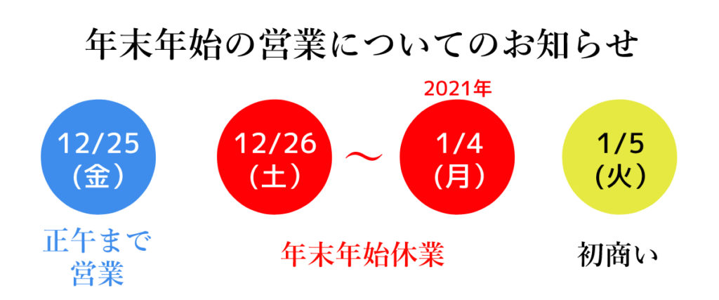 年末年始の営業についてのおしらせ